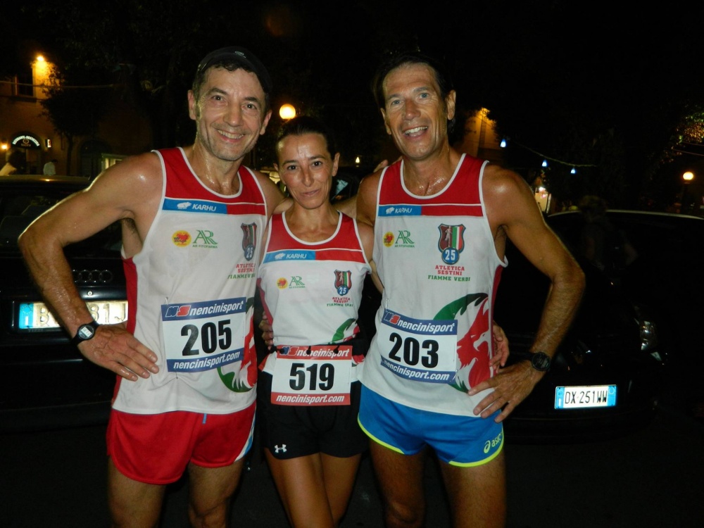 - Alla stesura di queste note sono in corsa sicuramente altri concorrenti runners d´occasione, nostrani o in vacanza. Ieri sera 23 agosto Trofeo Randellini organizzato da Porta Santo Spirito con la collaborazione della podistica e Atletica Sestini. Una miscela operativa a base di artigianalità pura ma estremamente professionali. Naturalmente essendo una gara cittadina in tempo di alta intensità emotiva tutti sono in fibrillazione. Quartieristi ed organizzatori. Nessuna ambulanza è partita durante la gara e questa è anche una fortuna. La gara dopo le preiscrizioni e il "potete andare" dei vigili si è svolta in modo regolare. Il caldo l´ha fatta da padrone ma la gara è andata ed i favoriti hanno vinto. Senza salite Francesca Barneschi non ha avuto avversarie. Massimo Mei men che meno. Bella la lotta x il 4° posto con il nostro lorenzo agguantato e pizzicato all´ultimo. Benissimo tutto il settore femminile e maschile. Rispetto allo scorso anno qualcuno ha migliorato di poco altri migliorato di molto il tempo. In crescita dopo Bernini Giorgio Severi apparso meno rigido del solito. Ivan e guido dopo la gara di Siena fra passato e presente in ascesa di risultati. Qualcuno ha ripreso x l´occasione. Nelle categorie brillano Sguerri e Caneschi alla doppietta (senza sparare!!). Giacobbe Giusti si lamenta ma migliora costantemente. Tonelli ha sfiorato il podio. Nel settore femminile benissimo Badica e Gatto entrambe accompagnato da volontari di giornata. I distacchi dalle prime si accorciano. Tiezzi Roberto "accompagnatoe" di maria reduce da una gara in sardegna con la presenza di parecchi aretini.(In allegato). Bene anche Silvia Barneschi e Asia Menci che paino piano si stanno abituando alle distanze lunghe. Tantissimi hanno corso x allenamento (visto il numero di gare in sequenza.Alcuni, liberi di scegliere con chi correre hanno optato x la sigla UISP.. Gare svole in precedenza il 12 agosto diversi alla Pratomagno Run con Anna Tent 2^ di categoria (accompagnata da Morgan) mentre sembra stano vedere paolo Grazzini fermo al 1° giro con lo stesso tempo o similare del Trail del Pratomagno. Uggiosi e Casciano coraggiosi al trail dell´Amiata. Sempre il 19 a Montaperti d´arbia ottimi Celestini e Lacrimini. Domani gare su pista ad Abbadia e si avvicinano i Campionati AICS su piista. Buona corsa a chi può. Le foto di Arezzo appena viste saranno "prese" con un grazie a Grigiotti " fornitore ufficiale"